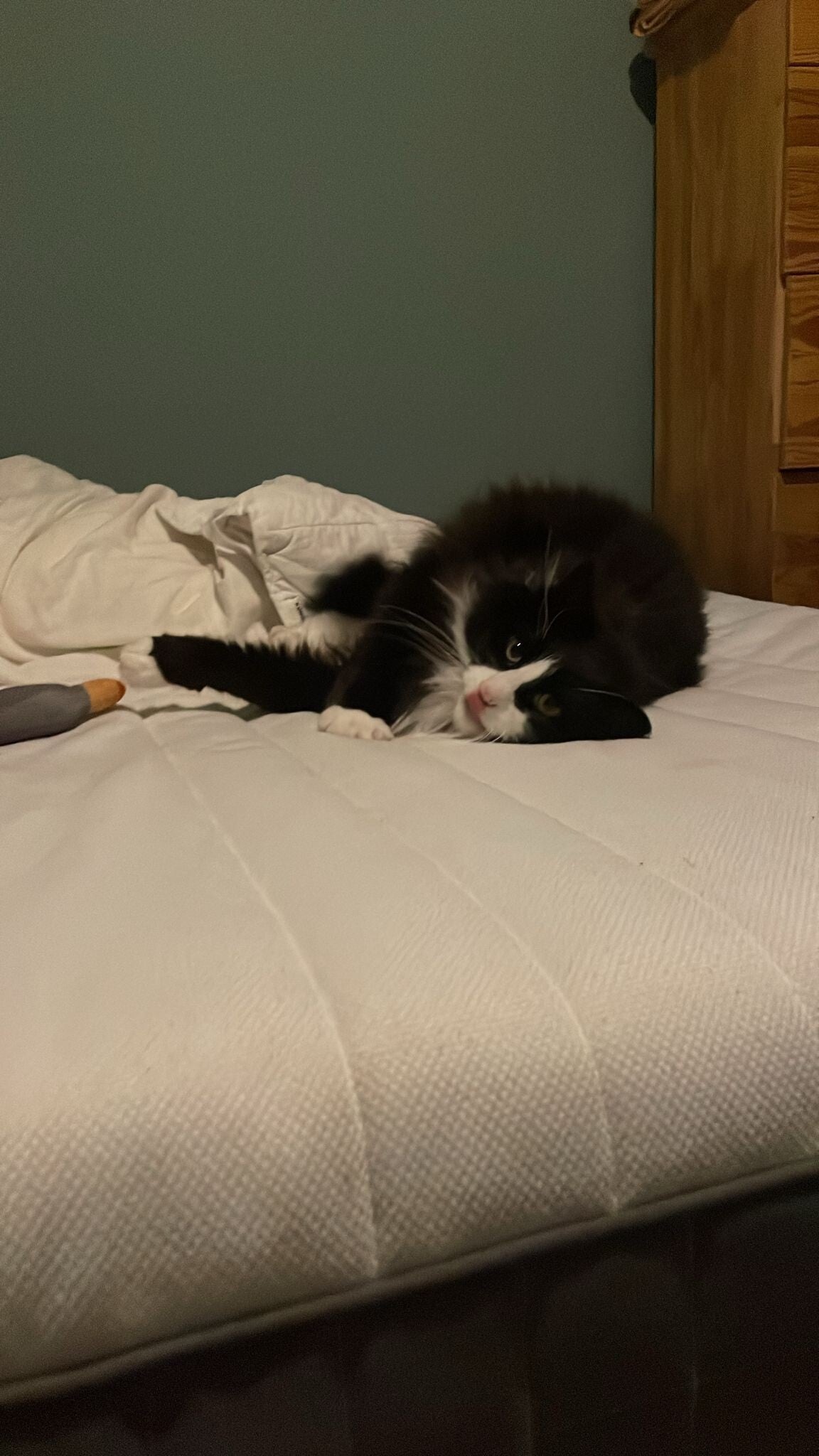 Midnight is a stunning little cat. She is very independent but loves cuddles and head bumps. She is very playful and loves to chase her toys so will happily demand food 24/7 to keep her energy up. If she tells you shes starving, shes not! Unlike most cats midnight has learnt how to use taps and is happily entertained by running water. She is vaccinated, neutered and chipped